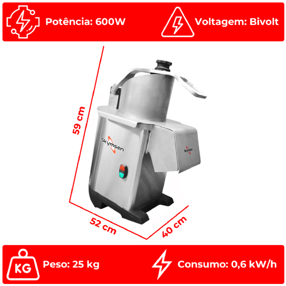 O multiprocessador da Skymsen foi desenvolvido com foco na simplicidade de uso, permitindo uma operação intuitiva com apenas um movimento único para alimentação. Seu motor potente e eficiente de 0,5 cv garante uma produção aproximada de 250 kg/h, ideal para grandes volumes de processamento. O bocal de alimentação largo facilita a inserção dos alimentos, enquanto a tampa removível assegura uma higienização completa e prática. Este equipamento substitui os modelos anteriores PA-7, PAIE-N e PAIE-S-N, oferecendo melhorias significativas em termos de desempenho e funcionalidade. Com pés emborrachados, o multiprocessador proporciona estabilidade e segurança durante o uso, seguindo as normativas do Inmetro.